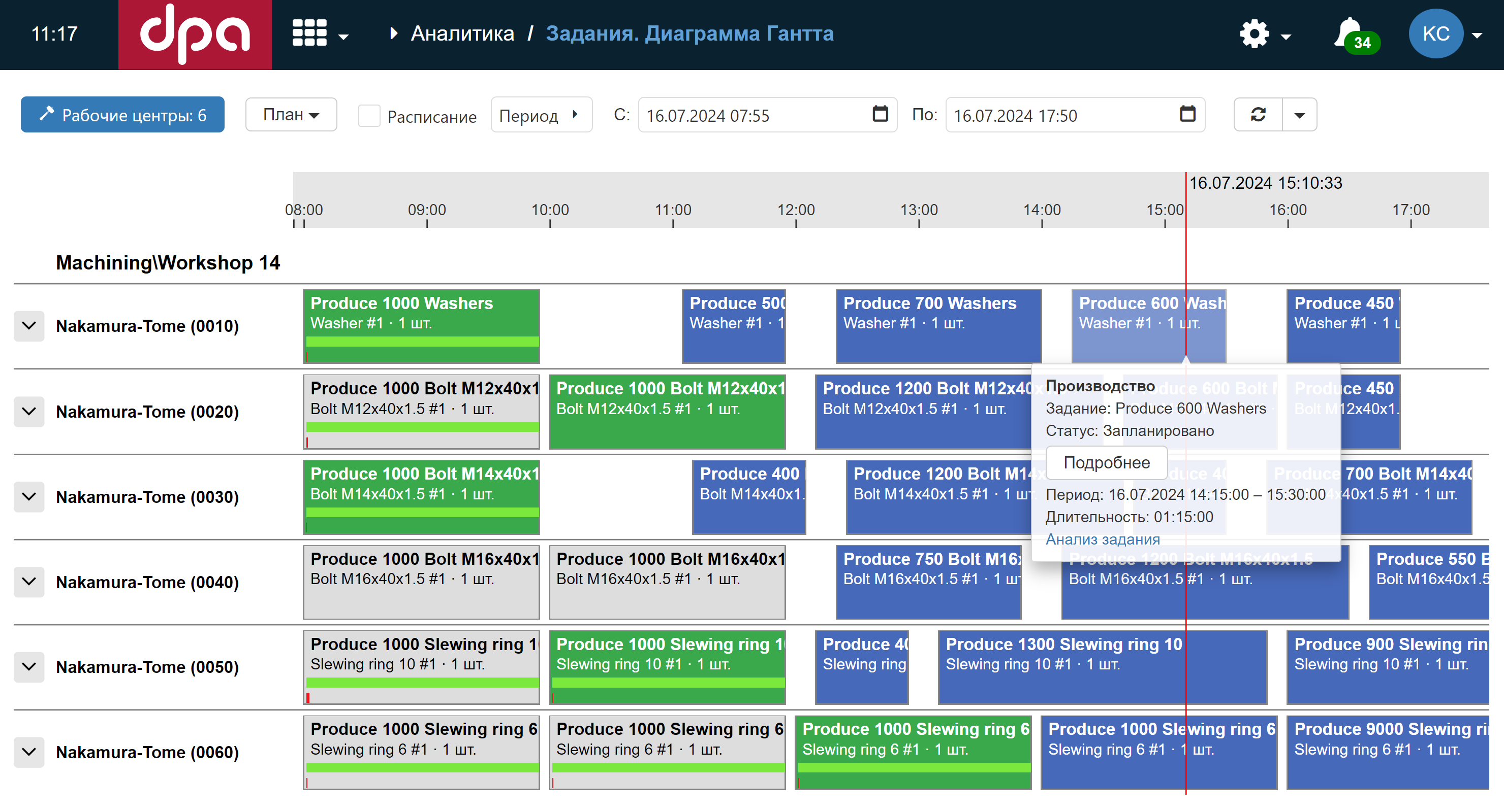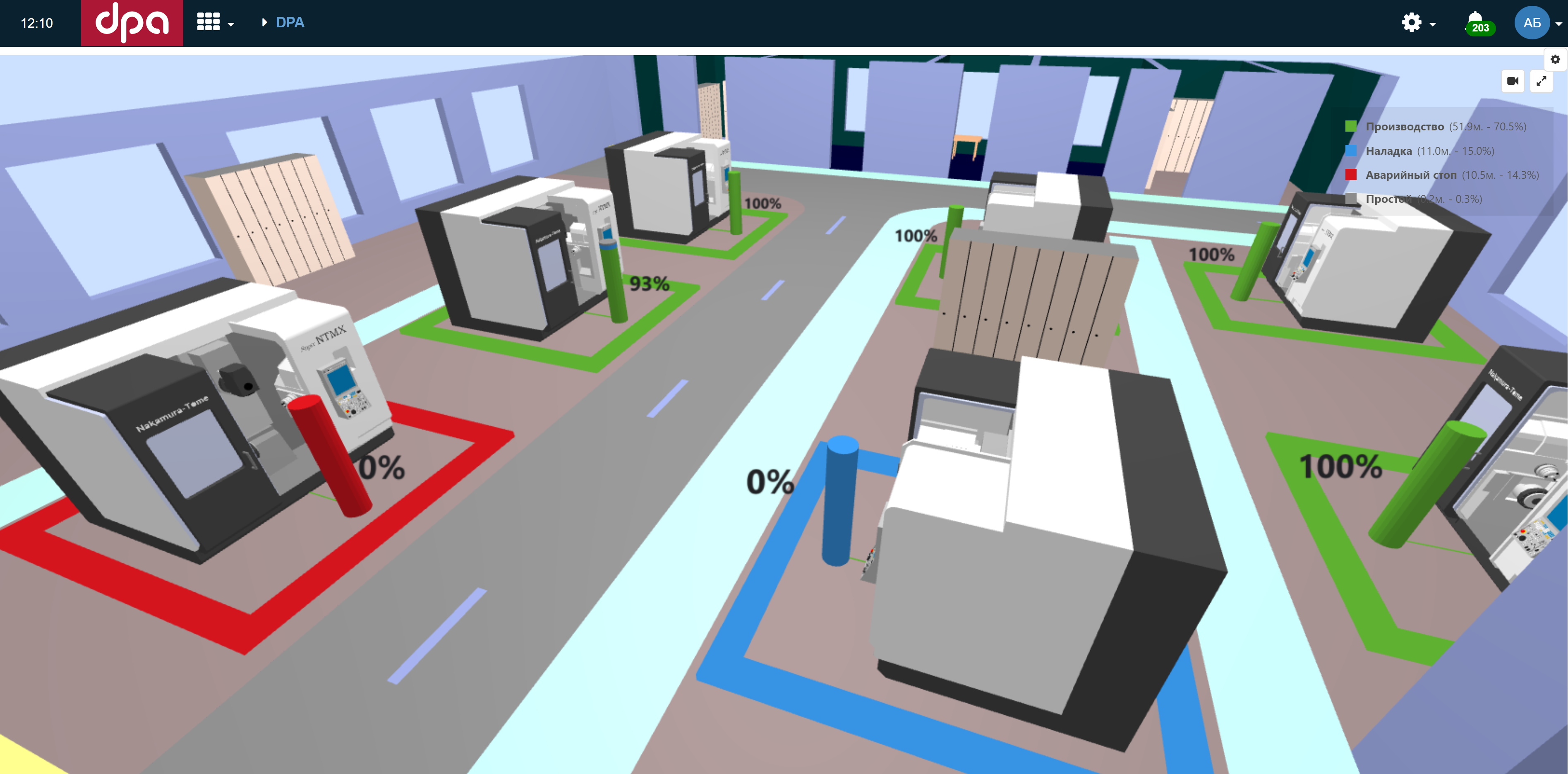 В реальности на большинстве производств отсутствует целостная и объективная картина того, что происходит в цеху: как работают станки, в каких режимах они находятся, где возникают простои и узкие места, и как фактическое выполнение отличается от планов. DPA решает эту проблему, обеспечивая прозрачность и управляемость производственных процессов на основе реальных машинных данных, а не отчётов «задним числом».